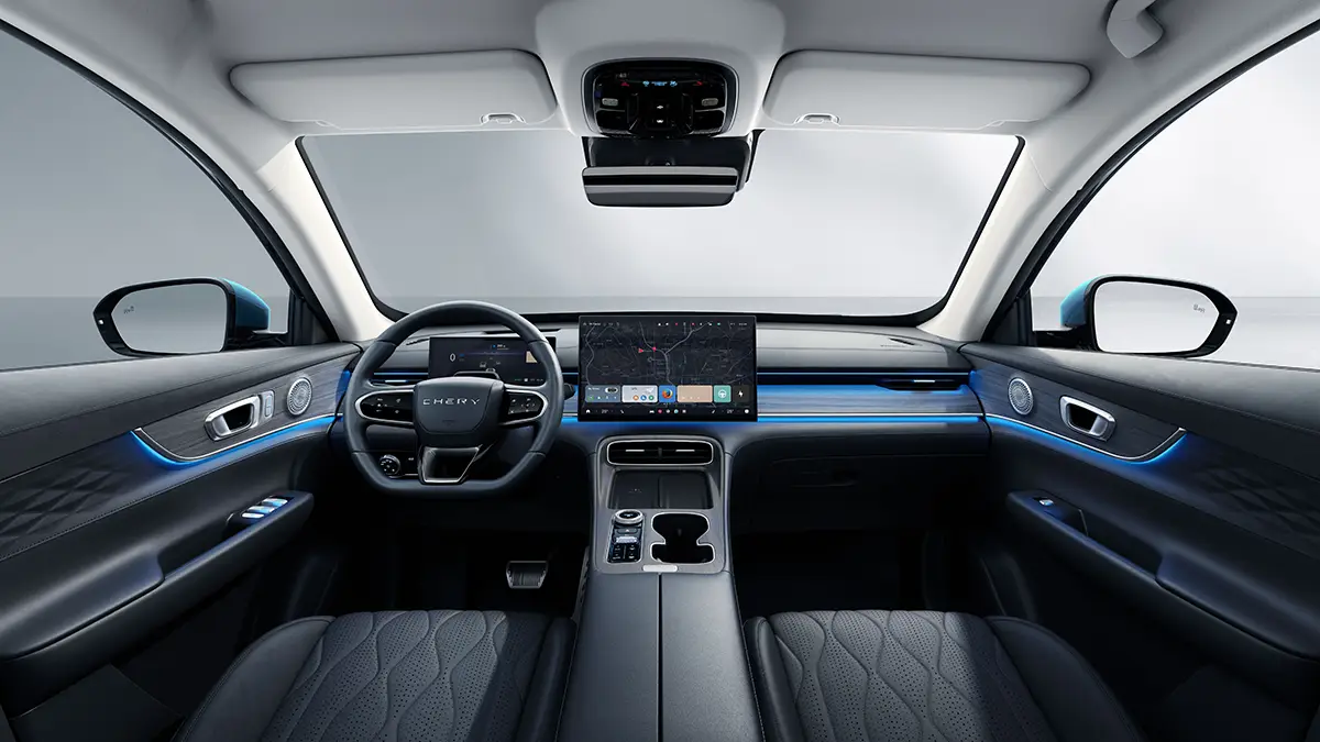Wyposażenie Chery Tiggo 7 jest całkiem bogate już w podstawowej wersji Essential. Auto oferuje zakrzywiony panel z dwoma ekranami o przekątnej 12,3 cala każdy (cyfrowe zegary i system multimedialny), kompatybilny z Apple CarPlay i Android Auto. Dodatkowo, w standardzie znajdują się podgrzewane i wentylowane fotele oraz panoramiczny dach o powierzchni 1,1 m².