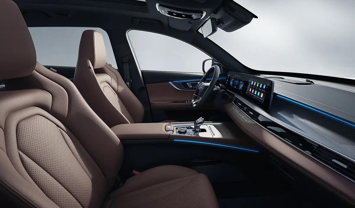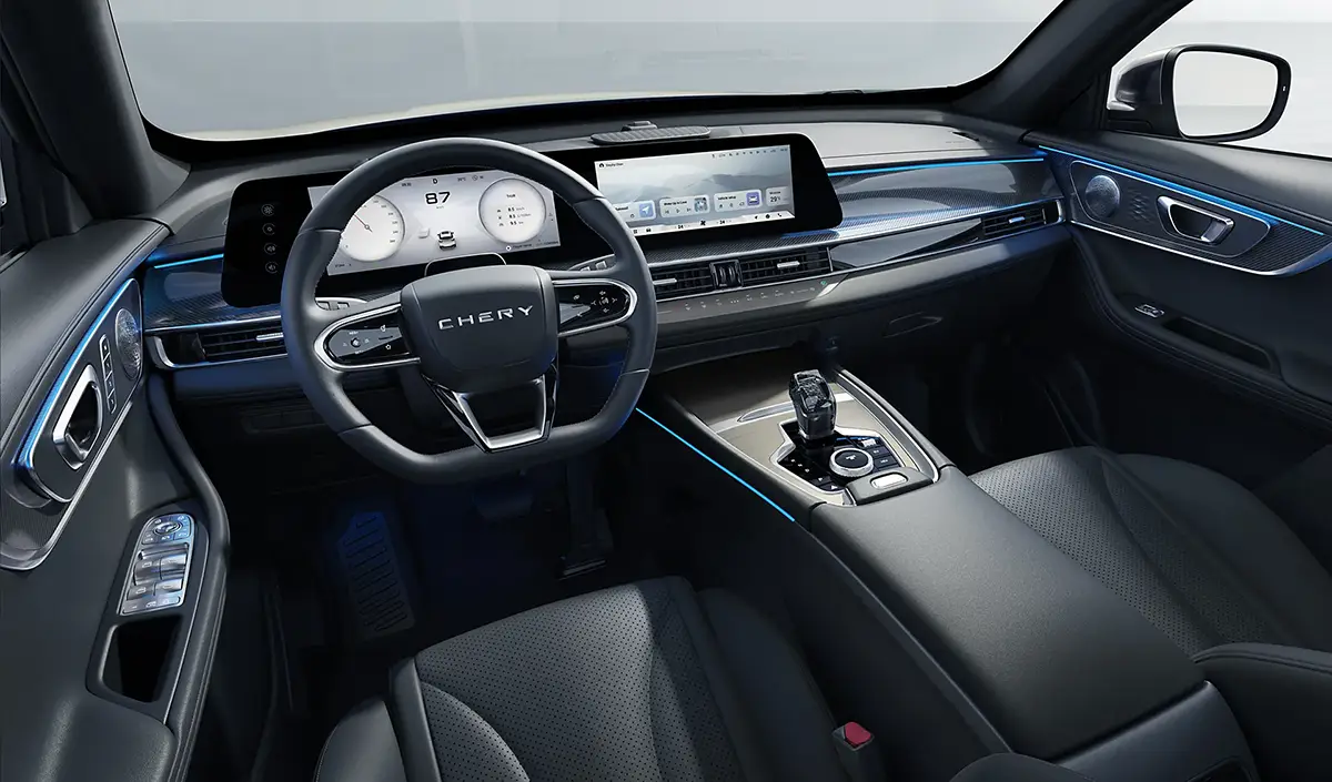 Wyposażenie Chery Tiggo 7 jest całkiem bogate już w podstawowej wersji Essential. Auto oferuje zakrzywiony panel z dwoma ekranami o przekątnej 12,3 cala każdy (cyfrowe zegary i system multimedialny), kompatybilny z Apple CarPlay i Android Auto. Dodatkowo, w standardzie znajdują się podgrzewane i wentylowane fotele oraz panoramiczny dach o powierzchni 1,1 m².