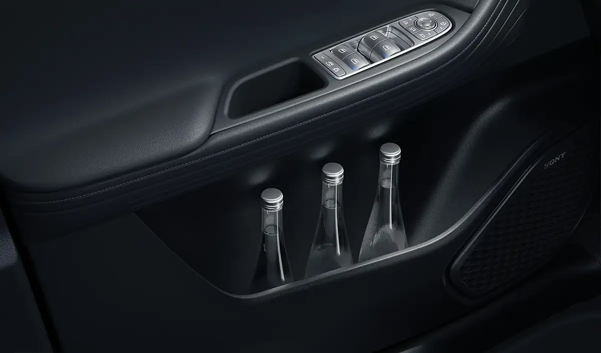 Standardowe wyposażenie Tiggo 8 obejmuje m.in. 15,6-calowy ekran centralny o rozdzielczości 2.5K z nawigacją i sterowaniem głosowym, dwustrefową klimatyzację oraz system audio SONY z 12 głośnikami. To elementy dostępne w wersjach Premium i Essential.